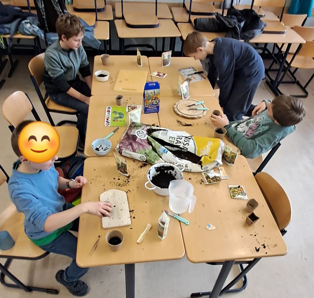 Jahrgänge 5 und 6 erleben einen abwechslungsreichen Projekttag mit vielfältigen Workshops rund um Nachhaltigkeit und gesellschaftliche Themen. Von Solarzellenbau über nachhaltige Ernährung bis hin zu kreativen Upcycling-Projekten – hier wird Nachhaltigkeit mit allen Sinnen erfahrbar. Die 6. Klassen bereiten dabei Stationen für die 5. Klassen vor, beispielsweise zur Herstellung von Samenbomben, Zitronenbatterien und Wachstüchern.