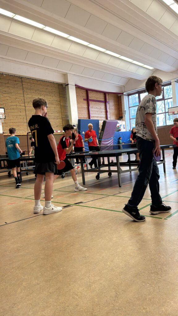 Jahrgang 7 profitiert von einem besonderen Konzept: Schülerinnen und Schüler des 11. Jahrgangs planen im Rahmen des Kurses „Studium und Beruf" eigenständig vielfältige Projekte und Workshops. Die Bandbreite ist äußerst vielseitig: von beispielsweise „Mission Green Exit" und dem Bau von Solarzellen über „Green Games – die Nachhaltigkeits-Olympiade", Geocaching-Touren zum Thema „Versteckte Nachhaltigkeit" bis hin zu kreativen Formaten wie dem Krimi-Dinner „Nachhaltig sabotiert!", dem Escape-Room „Challenge: Escape the Year 2067 – Reise in die Zukunft" oder Workshops zu Social Media und Gehirnforschung. Auch sportliche Angebote wie „Fit for Future – Kraftsport und gesunde Ernährung" oder naturwissenschaftliche Experimente wie „Chemie EXTREM – Feuer, Flamme, Farbe" und Raketenbau gehören dazu. So lernt der Jahrgang 11 Projektmanagement und Verantwortung.