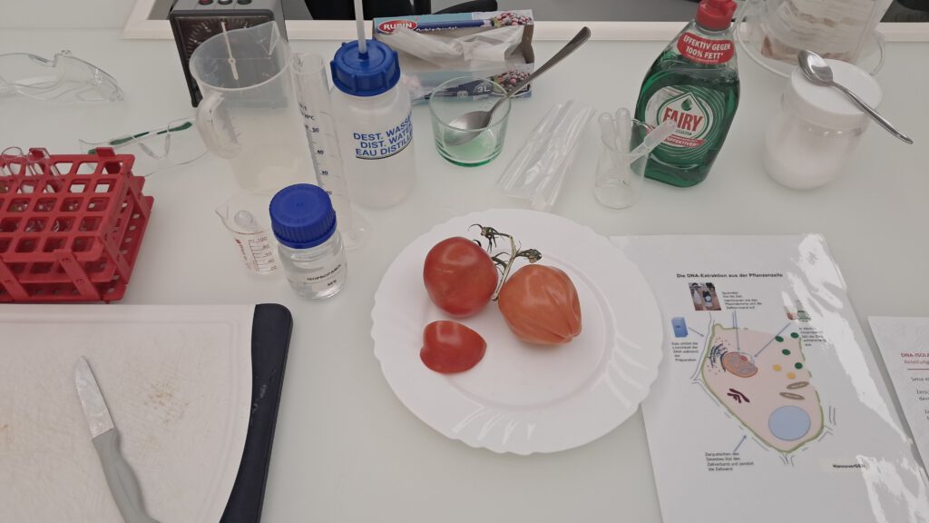 Wolfsburg? Als Destination einer Projektfahrt? Wolfsburg ist seit der COVID-19-Pandemie wieder alljährliches Ziel einer dreitägigen Exkursion der Schülerinnen und Schüler des 9. Jahrgangs, die fest im Schulprogramm der Schule verankert ist. Drei Tage gefüllt mit Naturwissenschaften und Technik zum Anfassen. Im Phaeno, einer Science-Ausstellung mit außergewöhnlicher Architektur, laden 350 Exponate zum Beobachten, Experimentieren und Verstehen ein. Die Schülerinnen und Schüler können ferner Workshops besuchen, die von Jahr zu Jahr leicht variieren. So können sie sich z. B. mit Motorentechnik, Themen wie der Lebensmitteltechnik (Biotech im Supermarkt oder wie man DNA aus Tomaten isoliert, s. Bilder), der Technologie für regenerative Energiequellen oder weiteren vielfältigen Herausforderungen der Zukunft beschäftigen, die das Phaeno-Team jedes Jahr variationsreich anbietet.